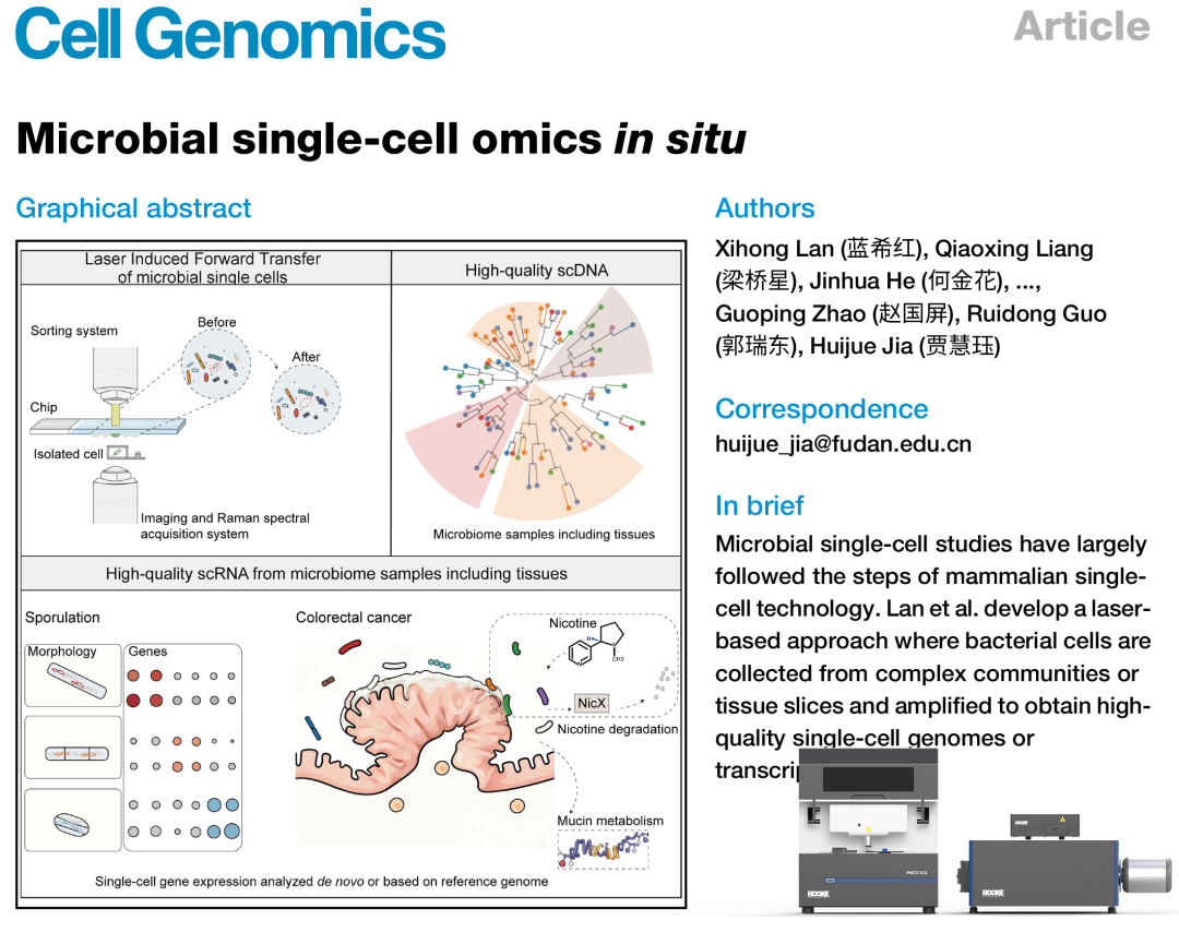 Cell子刊 | 贾慧珏教授团队应用LIFT技术实现微生物原位单细胞组学突破